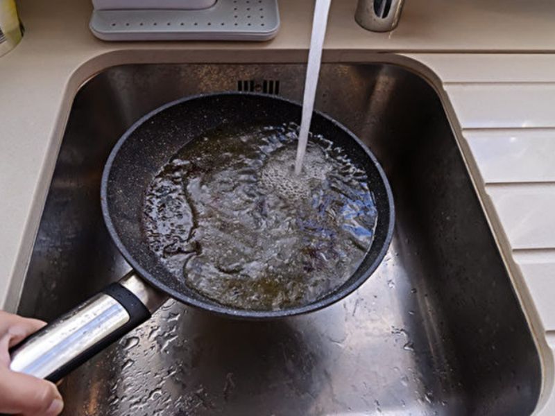 Bước 3: rửa sạch chảo và lau khô là đã có thể phục hồi một phần lớp chống dính.