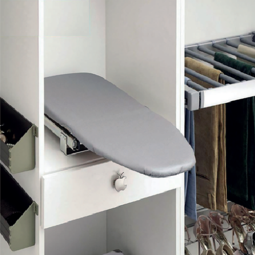 Một chiếc giá đỡ vừa chiều rộng tủ quần áo với hệ thống ray trượt để bạn dễ dàng kéo chiếc cầu là ra không gian ngoài tủ quần áo.