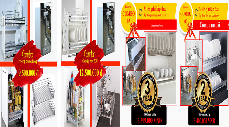 - Combo Giá bát nâng hạ + thùng gạo + giá xoong nồi +giá dao thớt