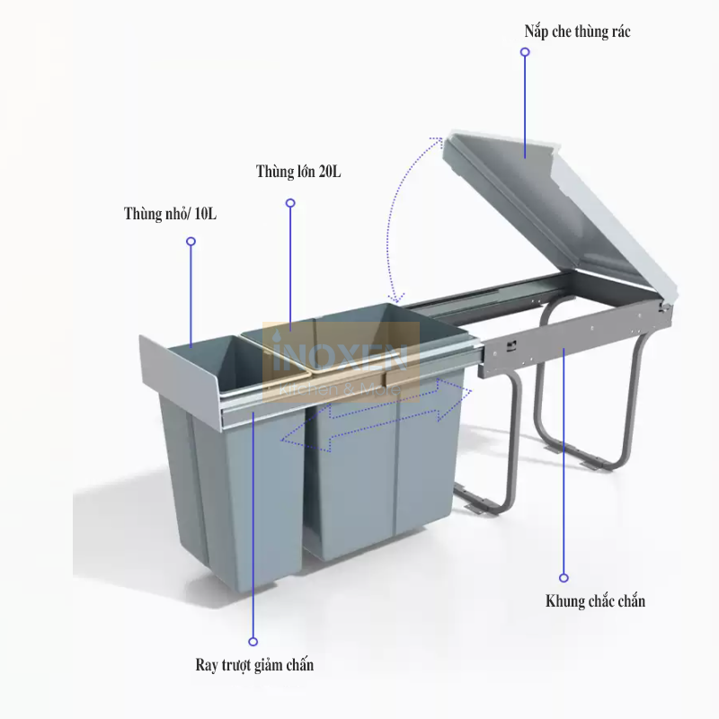 Việc tích hợp thùng đựng rác âm tủ vào không gian bếp cũng là một giải pháp thông minh để giấu đi mùi khó chịu từ rác thải, đồng thời giữ cho không gian bếp luôn sạch sẽ và gọn gàng. Việc này không chỉ mang lại sự tiện lợi trong việc vận hành mà còn tạo điểm nhấn thẩm mỹ cho căn bếp của bạn.