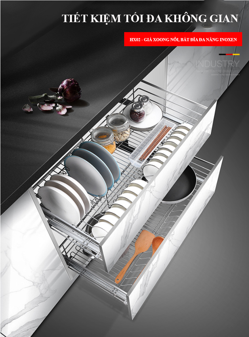 12/04/2021 Đăng bởi: inoxen-vnXoong nồi là dụng cụ không thể thiếu trong quá trình nấu ăn, nhưng sự cồng kềnh của chúng nhiều lúc tạo nên sự lộn xộn bừa bãi không tránh khỏi áp lực mỗi lần bạn vào bếp. Hãy để các mẫu giá để xoong nồi đem đến cách lưu trữ gọn gàng khoa học, đặc biệt sự tích hợp ray trượt giảm chấn giúp sự chuyển động ra vào nhẹ nhàng đến mượt mà, không tạo lên tiếng ồn, giúp cho phụ kiện có độ bền hơn. Mẫu giá đựng xoong nồi INOXEN đã cho ra đời nhiều kiểu dáng, với nhiều kích thước phù hợp với nhiều không gian hộc tủ bếp Việt.