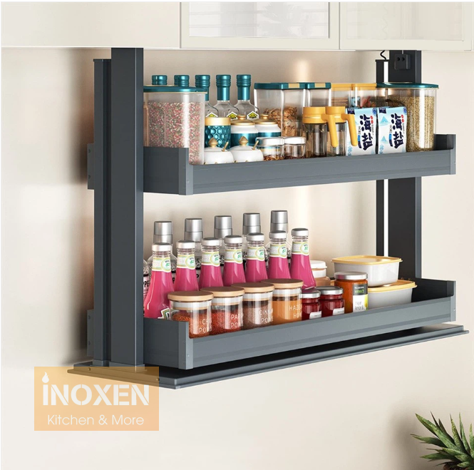 Không chỉ đơn thuần là nơi lưu trữ, giá nâng hạ Inoxen còn là trợ thủ hữu ích giúp cho căn bếp trở nên gọn gàng và khoa học hơn. Các lọ gia vị sẽ được sắp xếp ngăn nắp trên từng tầng kệ, dễ dàng tìm kiếm, dễ nhìn thấy, không còn tình trạng phải lục tung tủ bếp mỗi khi chuẩn bị nấu ăn.