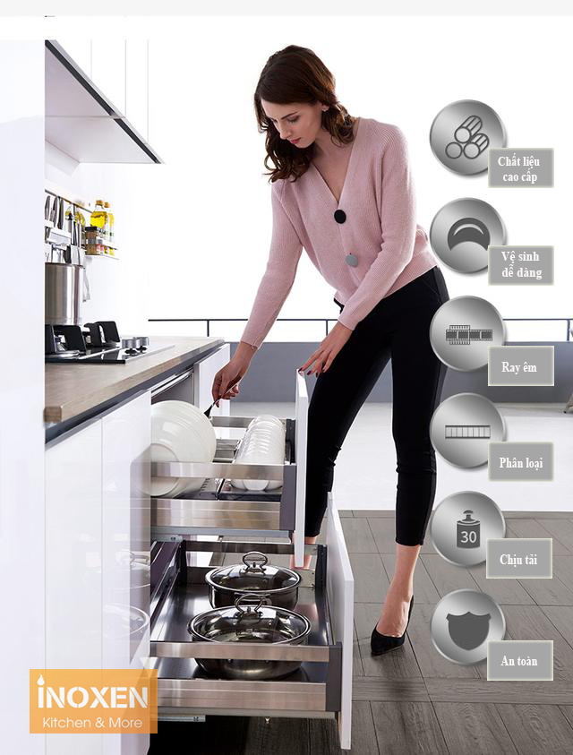 - Thứ ba hệ thống ray trượt cực nhạy, chỉ cần một cú chạm nhẹ là giá đã tự động đẩy ra. Điều này giúp cho việc lấy đồ trở nên linh hoạt, nhanh chóng.