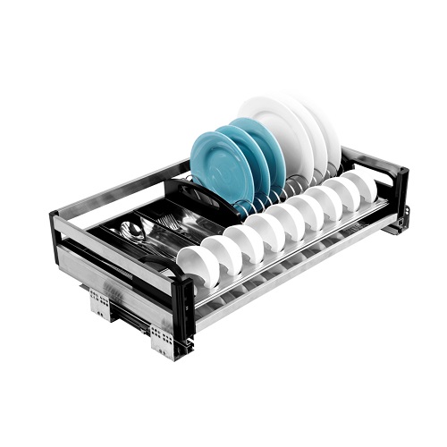 - Thiết kế ray âm giảm chấn và rổ sử dụng được cho cửa mở bản lề. Hệ thống ray được tích hợp kép mở toàn phần.