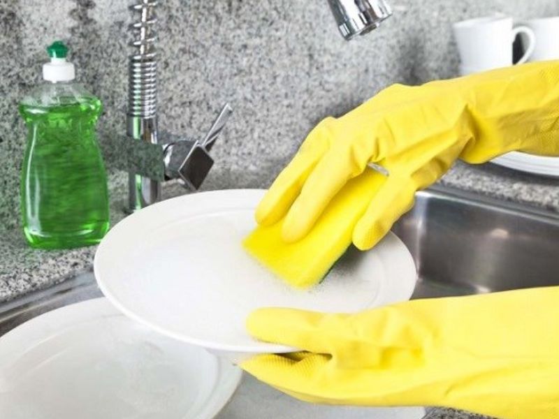 Sử dụng găng tay cao su để rửa bát