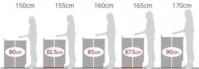 Chiều cao của mặt bếp được thiết kế tốt nhất theo chiều cao của người sử dụng, thường là 80-90 cm, được xác định bằng chiều cao thoải mái nhất khi cầm thìa.