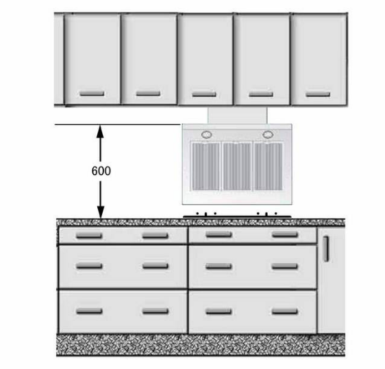 Chiều cao của máy hút mùi âm trần trong nhà bếp thường là khoảng 65-75cm tính từ mặt bếp nấu, còn đáy của máy hút mùi âm trần thường là 35-45cm.