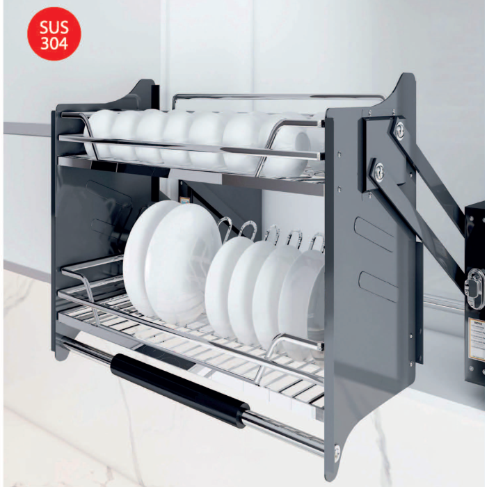 Bạn có thể dễ dàng nâng hoặc hạ giá bát tùy thuộc vào nhu cầu sử dụng. Điều này đặc biệt hữu ích cho những gia đình có trẻ nhỏ hoặc người cao tuổi, khi họ cần một không gian an toàn và thuận tiện để lấy bát đĩa mà không phải cúi người quá nhiều.
