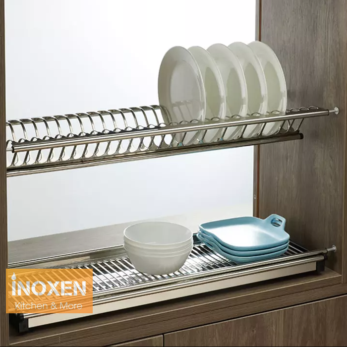 Các thanh đỡ được bố trí hợp lý với khoảng cách phù hợp, có thể điều chỉnh để phù hợp với nhiều kích thước bát đĩa khác nhau. Hệ thống ray trượt êm ái, chắc chắn giúp việc kéo đẩy nhẹ nhàng và an toàn.