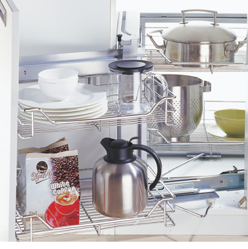 Bạn có thể thiết kế chiều rộng của bề mặt bếp rộng thêm một chút để tăng diện tích sử dụng cho bề mặt đá bên trên. Khi áp dụng những chiếc kệ góc, mâm xoay góc tủ bếp thì những góc khuất sâu bên trong tay không thể với tới đều được các sản phẩm thông minh này hỗ trợ hoàn toàn.